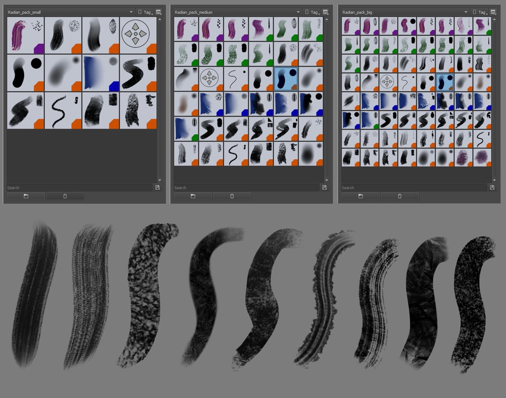Some of them made from my own ideas, some was inspired by brushes my favorite artist use, such as Craig Mullins, Sergey Kolesov, Ruan Jia, Sparth, Min Yum, Zedig and others.